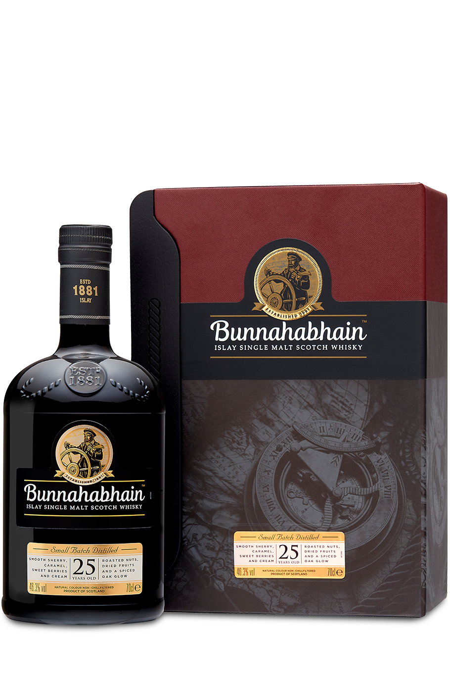 Magnificently well aged with a spiced oak glow, the 25 year old is smooth and sweet - sherry, caramel, berries and cream are balanced with roasted nuts to make a delicate yet complex single malt.