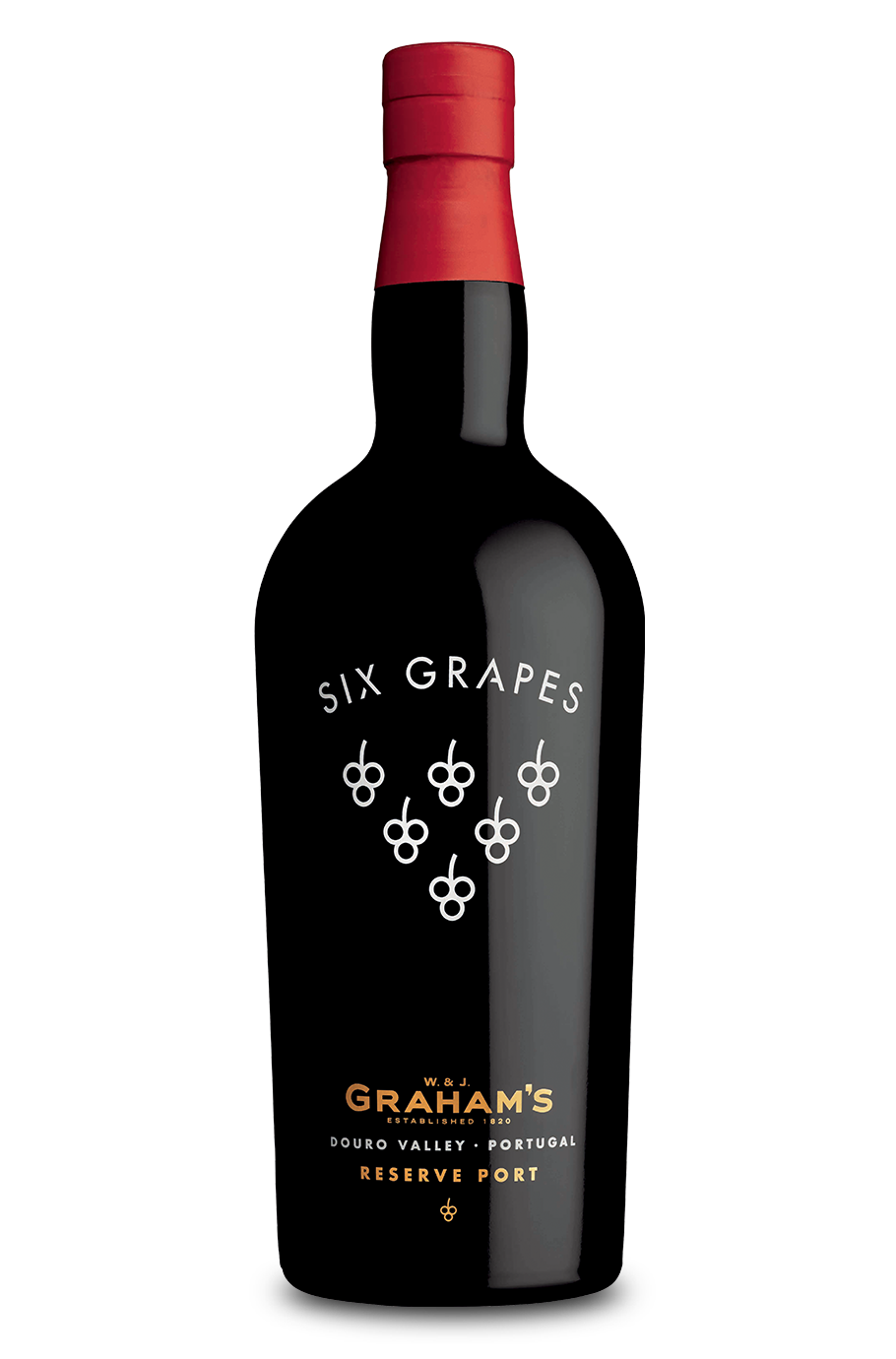 Six Grapes is one of Graham's original Port blends. The rather curious and primitive depiction of bunches of grapes on the label has always been used on the cask ends to identify the “Six Grapes” blend. In the Graham's stocks a bunch of grapes signifies a wine of Vintage quality and amongst these the six bunches denote the fact that this is the darkest and most full-bodied wine. Only grapes from firstclass vineyards are used for this mark. Dark red colour, with a seductive rich perfume of ripe plums and cherries. On the palate, complex, with a good structure and a long lingering finish.